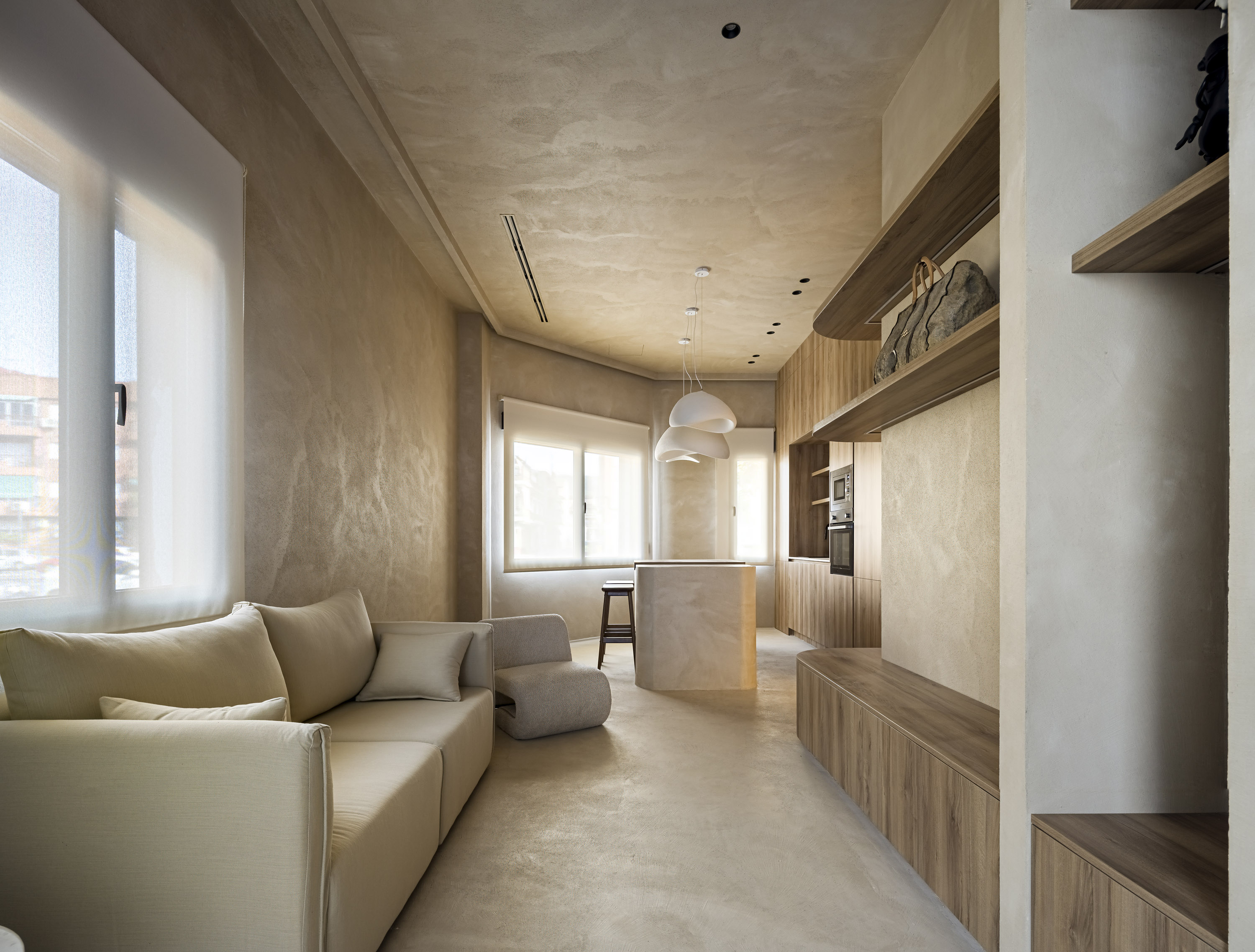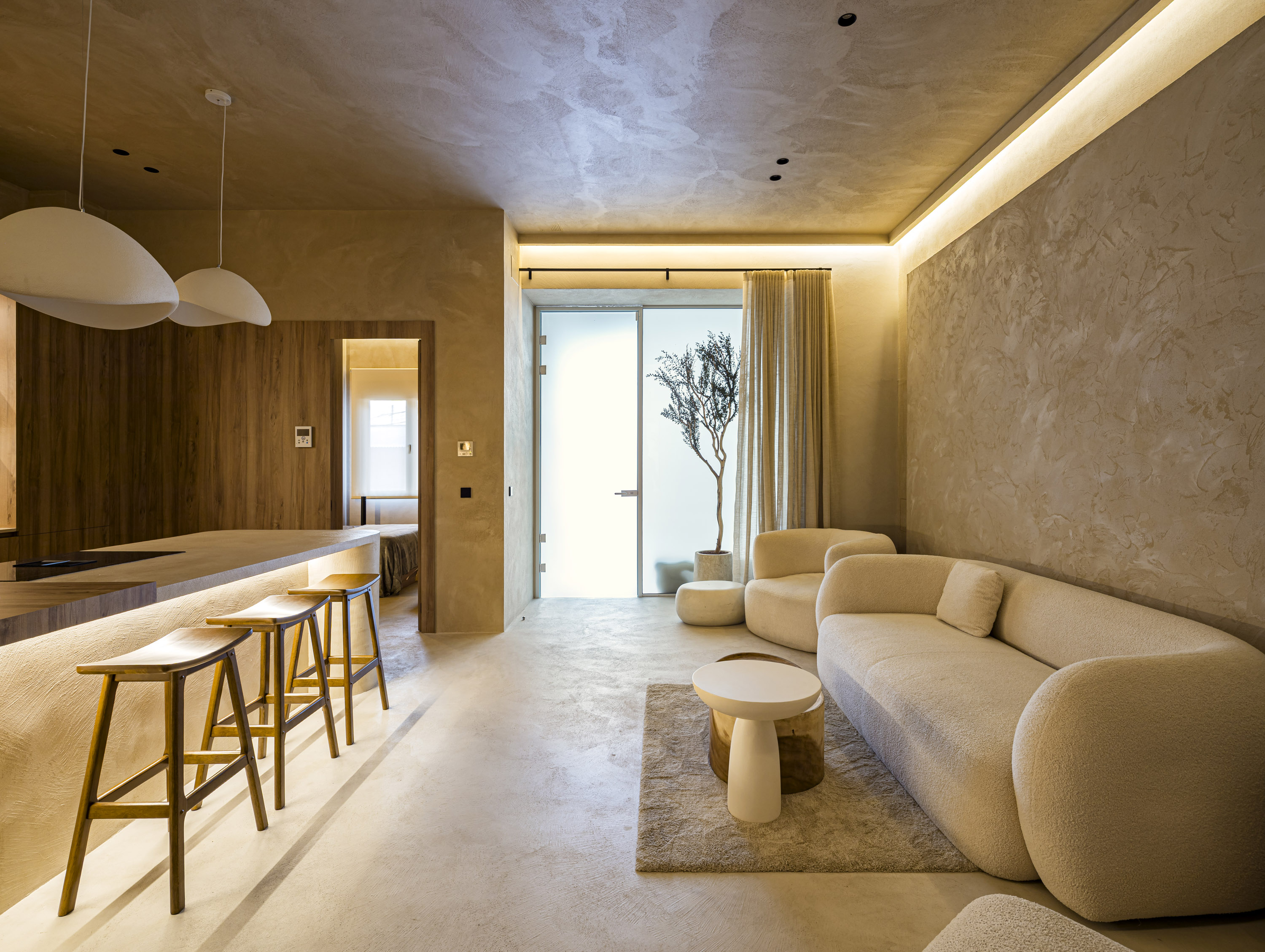 Cada apartamento se ha concebido como un refugio contemporáneo, donde los materiales nobles, las texturas orgánicas y una paleta cromática serena se integran en un diseño cálido, equilibrado y sofisticado. La luz natural se ha potenciado como elemento principal, reforzando la conexión entre interior y exterior y aportando una sensación constante de calma y amplitud.